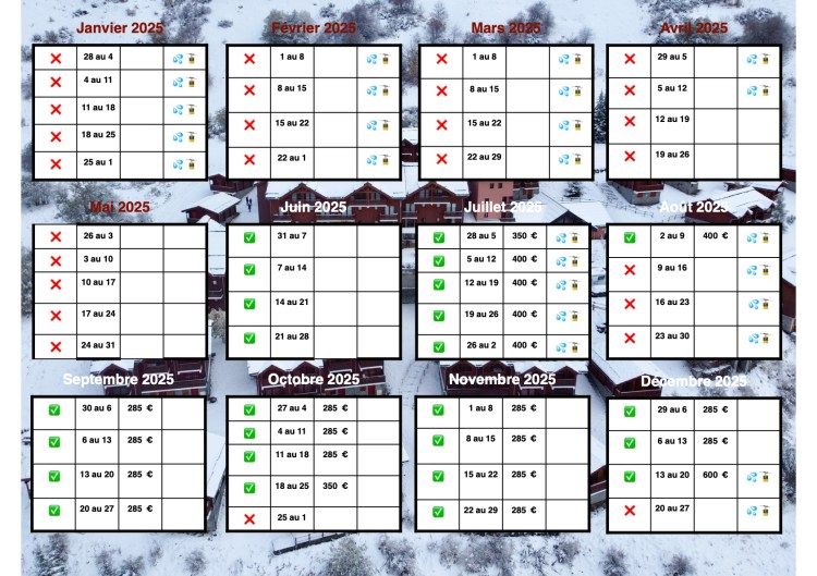 Calendrier des disponibilités 2025